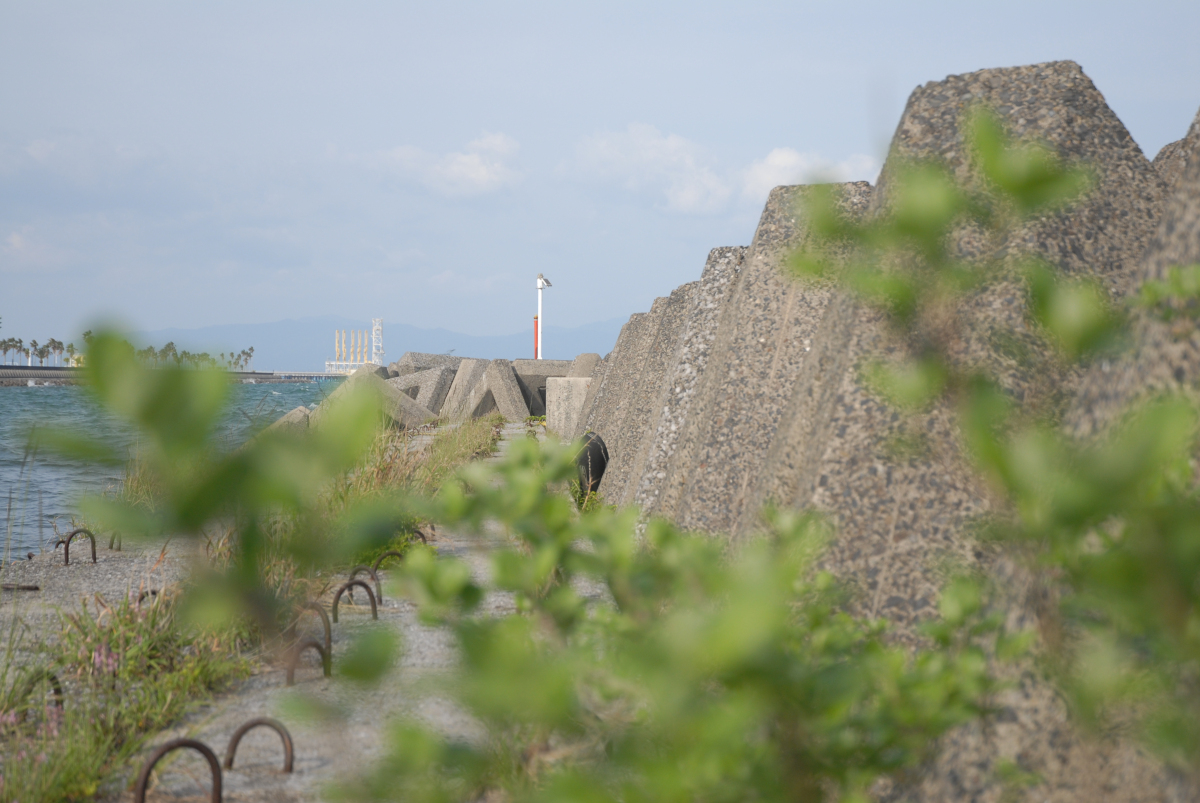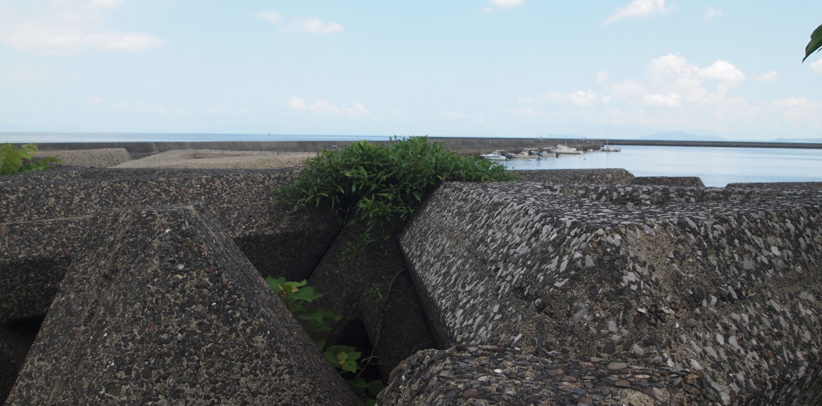 長堤防の曲がり部にはテトラが積まれたところがあり、チヌやカサゴなどのポイントとなっています。