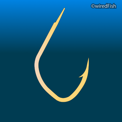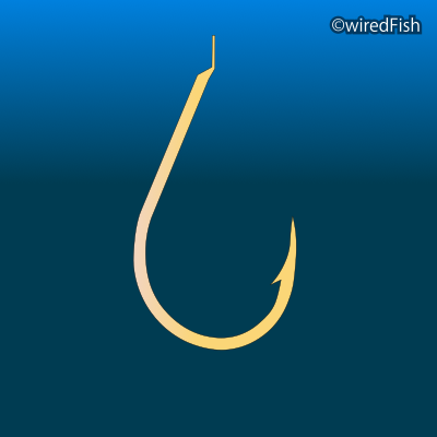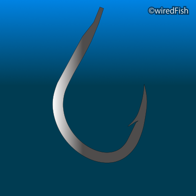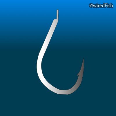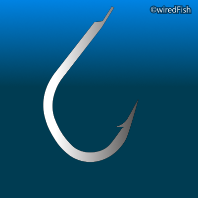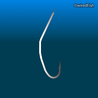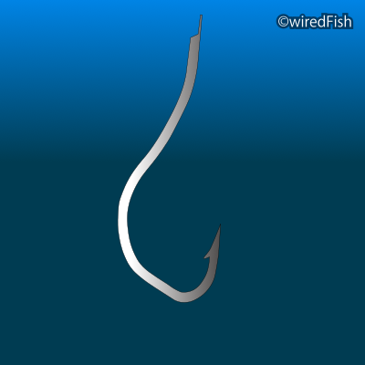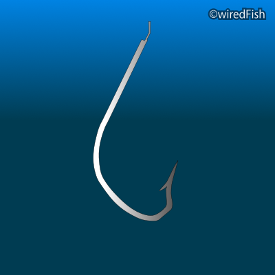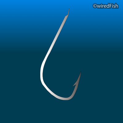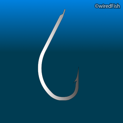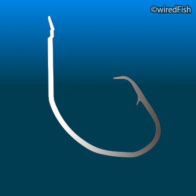 針先が軸側に向いた典型的なネムリ針形状の針です。針掛かりは悪くなりますが、一度掛かると外れにくく、餌を丸飲みするような魚に効果的です。ネムリ形状により、根掛かりもかなり少なくなりますので根魚狙いにも効果的です。サイズは6号前後の中型から、20号前後の大型まで幅広く市販されていますので様々なサイズの魚に使うことができます。